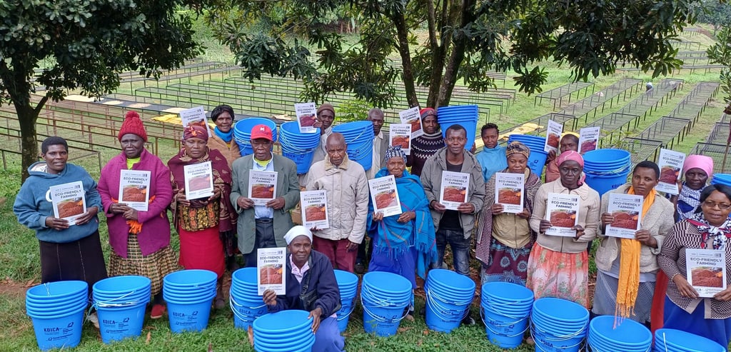 In line with our commitment to enhancing sustainable coffee farming, Kirurumwe Farmers Cooperative Society (KFCS) recently completed the fourth round of eco-friendly farming training. The training was conducted from August 26th to September 5th, 2024, in the three KFCS factories: Kevote, Kianjuki, and Ngaindethia. The training is part of a broader income generation project funded by Korea International Cooperation Agency (KOICA), Good Neighbors Global Impact Foundation(GNGIF) and facilitated by Kenya Good Neighbors, with a vision to uplift the livelihoods of coffee farmers in Embu County. This remarkable initiative equipped 396 farmers with essential knowledge in eco-friendly farming practices that was led by KFCS’s Trainers of Trainers (TOTs), who emphasized sustainable agricultural practices to improve both coffee production and farmers' income while preserving the environment.