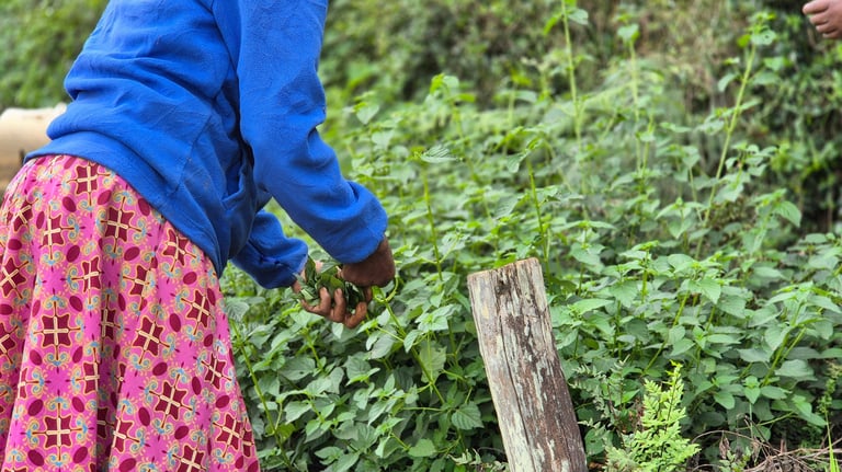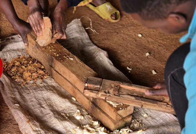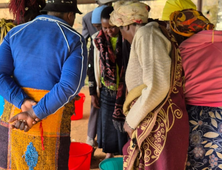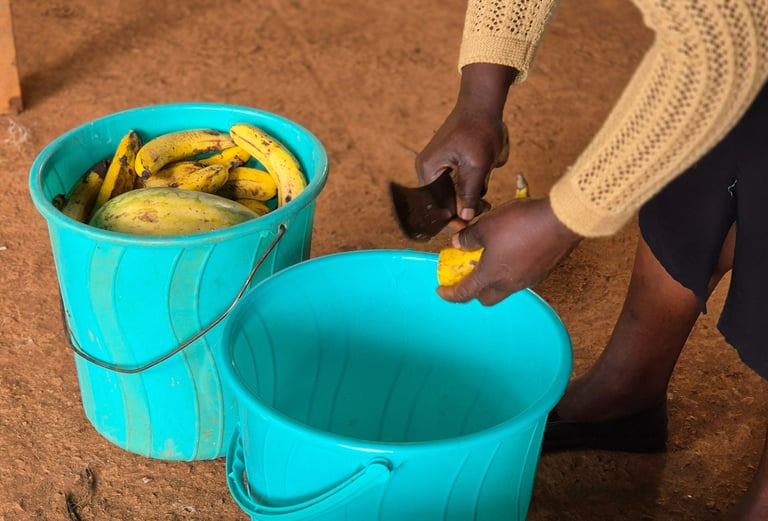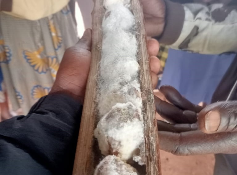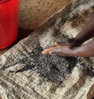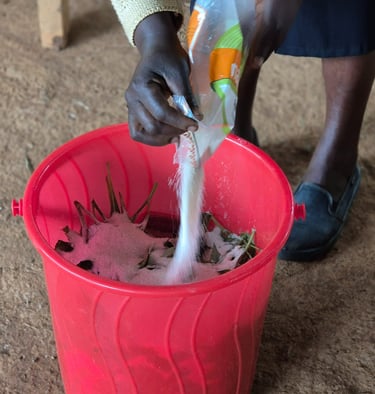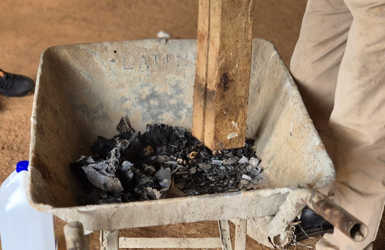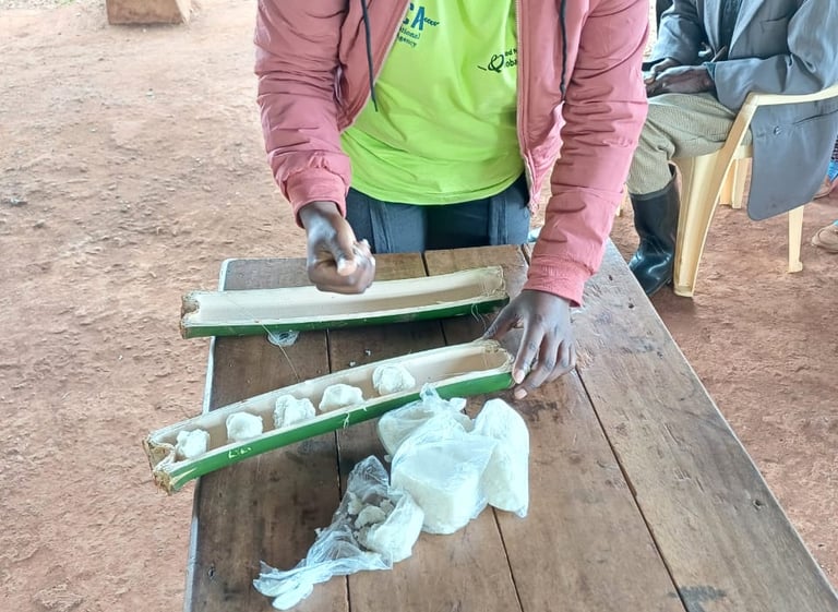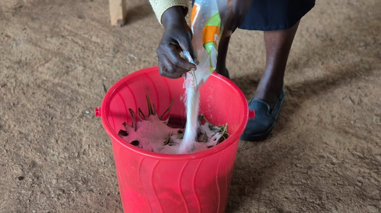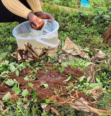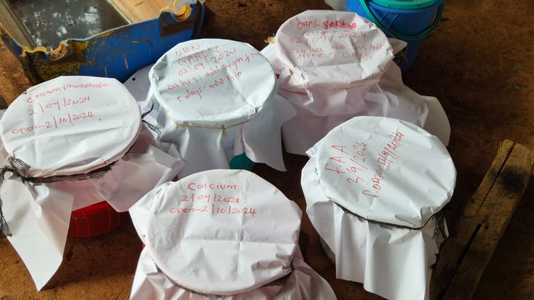 Calcium and calcium phosphate play an essential role in plant growth, particularly during flowering. Farmers were trained on how to make calcium from eggshells and calcium phosphate from animal bones. These natural supplements help strengthen flowering and improve overall crop productivity.