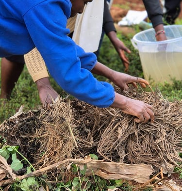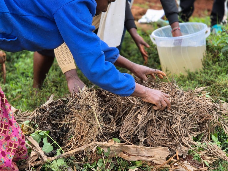 Mulching: The farmers were trained on the importance of covering the soil with dead plant material (mulching). This method not only protects the microorganisms but also helps retain moisture, prevent soil erosion, suppress weeds, and enhance the soil structure. Mulching contributes to a healthier and more sustainable farming ecosystem.