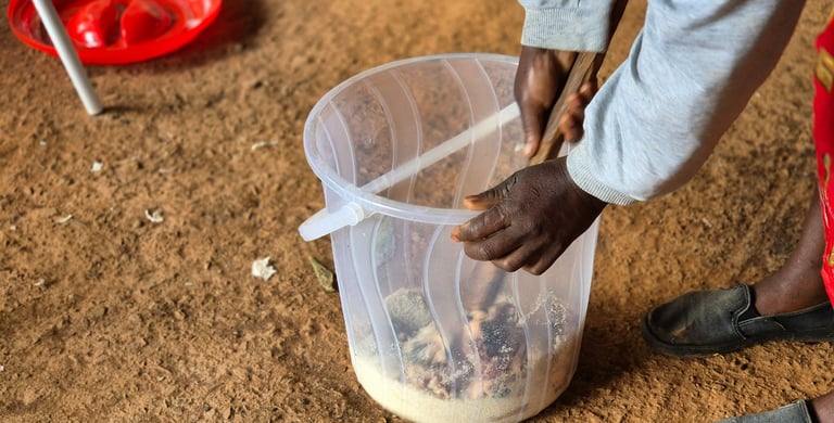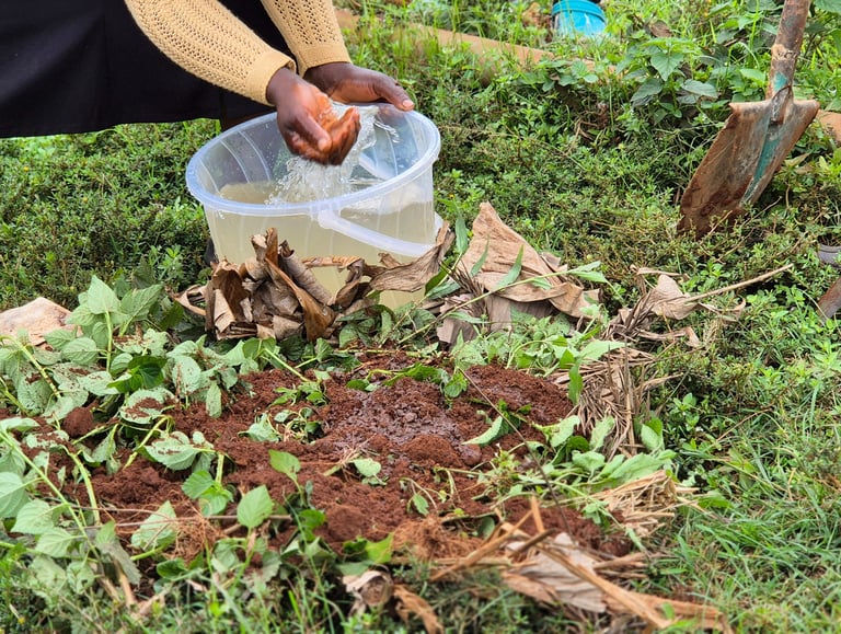 Composting: Farmers were taught the process of composting, which involves combining dry matter (carbon source), green matter (nitrogen source), air, water, and microorganisms. A practical demonstration of how to create aerobic compost was conducted, showing the proper steps, such as constructing a compost box, adding layers of materials, and maintaining moisture and temperature for optimal decomposition.
