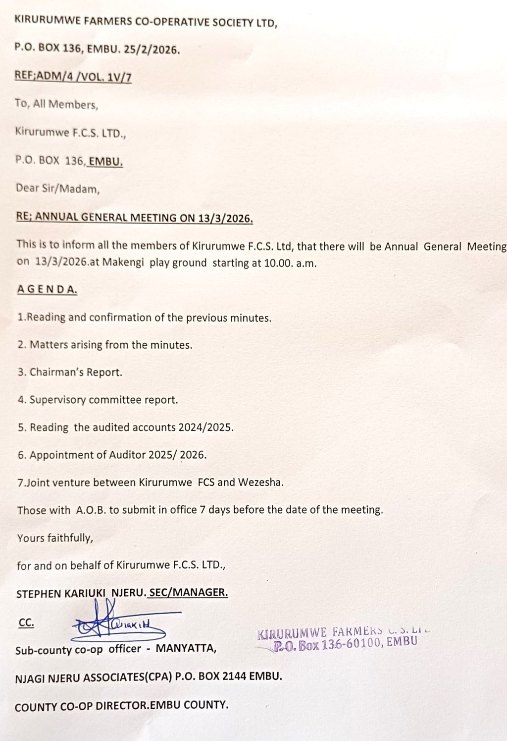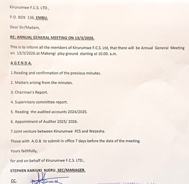 Location : GGX9+QXQ, Kivwe - Kevote Rd, Makengi. P.O. BOX 136-60100, EMBU