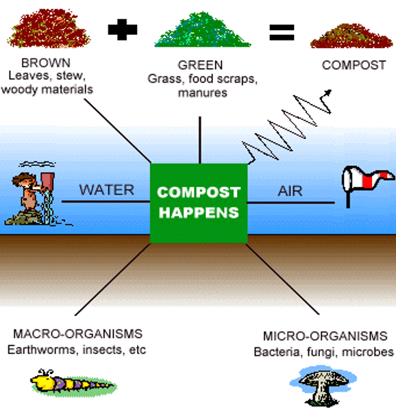 Water – Provides moisture necessary for microbial activity and decomposition.