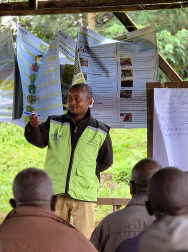 The training sessions took place across three strategic locations in Embu, with a total of 120 farmers participating. At each site, two KFCS TOT Trainers led the sessions, while Anams Research and Consulting Limited closely monitored the training. Since the TOTs are not experts, the presence of an Anams consultant ensured the accuracy of the information delivered and addressed specific challenges related to each cooperative's distinct environmental and agricultural conditions.