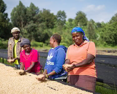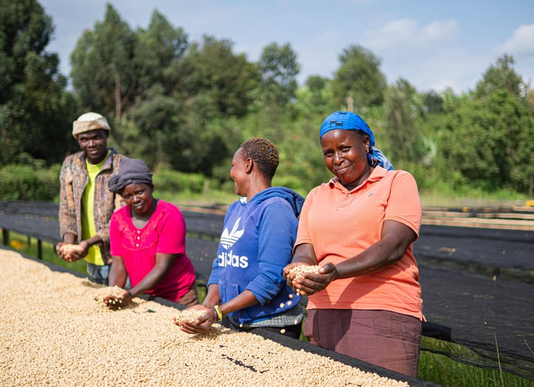 Once dried, the parchments are transported to the miller for milling. The coffee is sold through KCCE via auctions or direct sales.