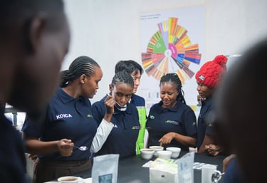 Quality control is a key aspect of coffee production. Through cupping training, farmers learn how to taste and evaluate coffee, ensuring that only the best coffee makes it to market. This training helps farmers understand the nuances of coffee flavors and quality standards.